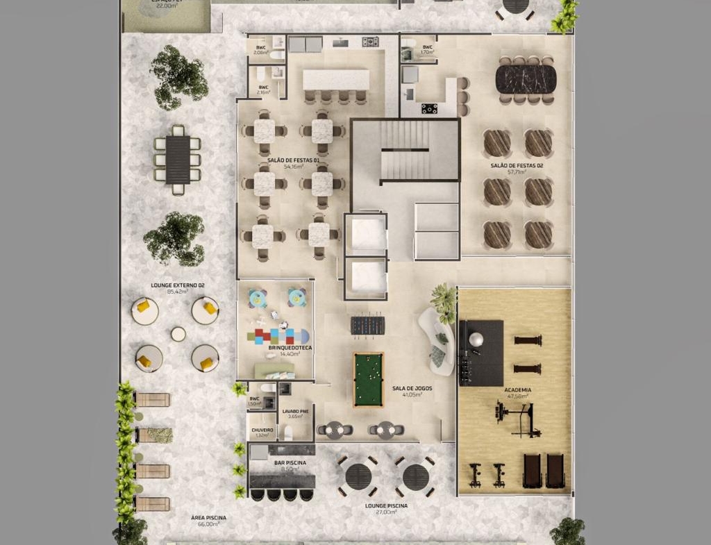 • Diversos lounges externos para convivência