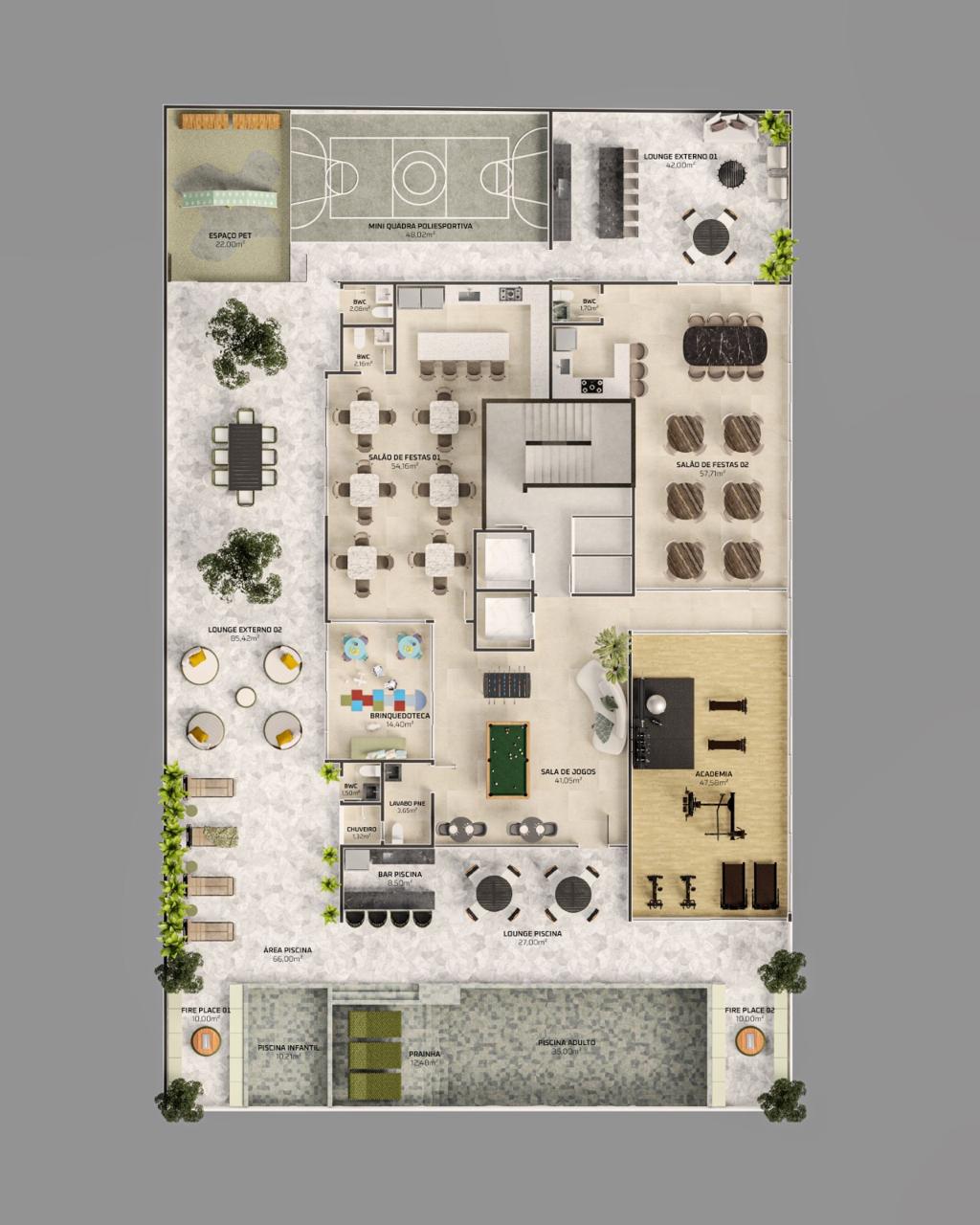• Lazer: No 4º pavimento, com mais de 683 m² de área